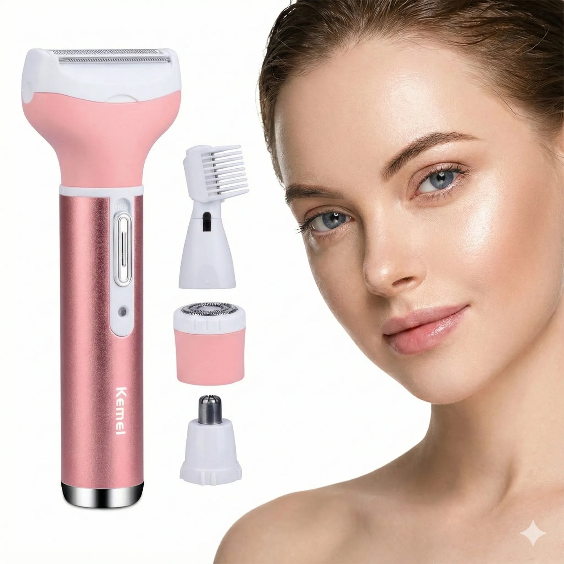 4-in-1 Rechargeable Hair Removal Trimmer for Women | Lady Shaver, Eyebrow, Nose & Facial Hair Trimmer (Pink) – CocoKart™