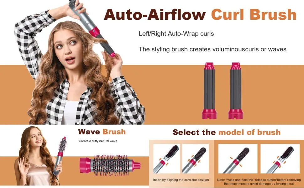 5-in-1 Hair Dryer Brush Set | Hot Air Styler with Detachable Heads for Drying, Straightening, Curling & Combing